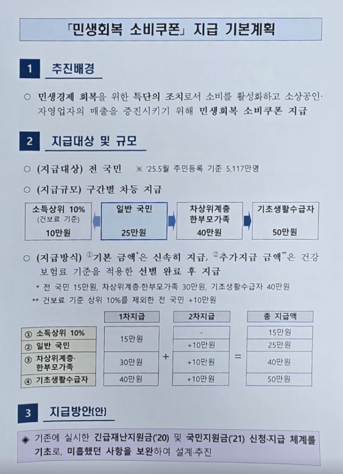 ‘민생회복 소비쿠폰’은 소비 진작과 자영업자 매출 증가를 목표로 한 정부 지원금입니다.