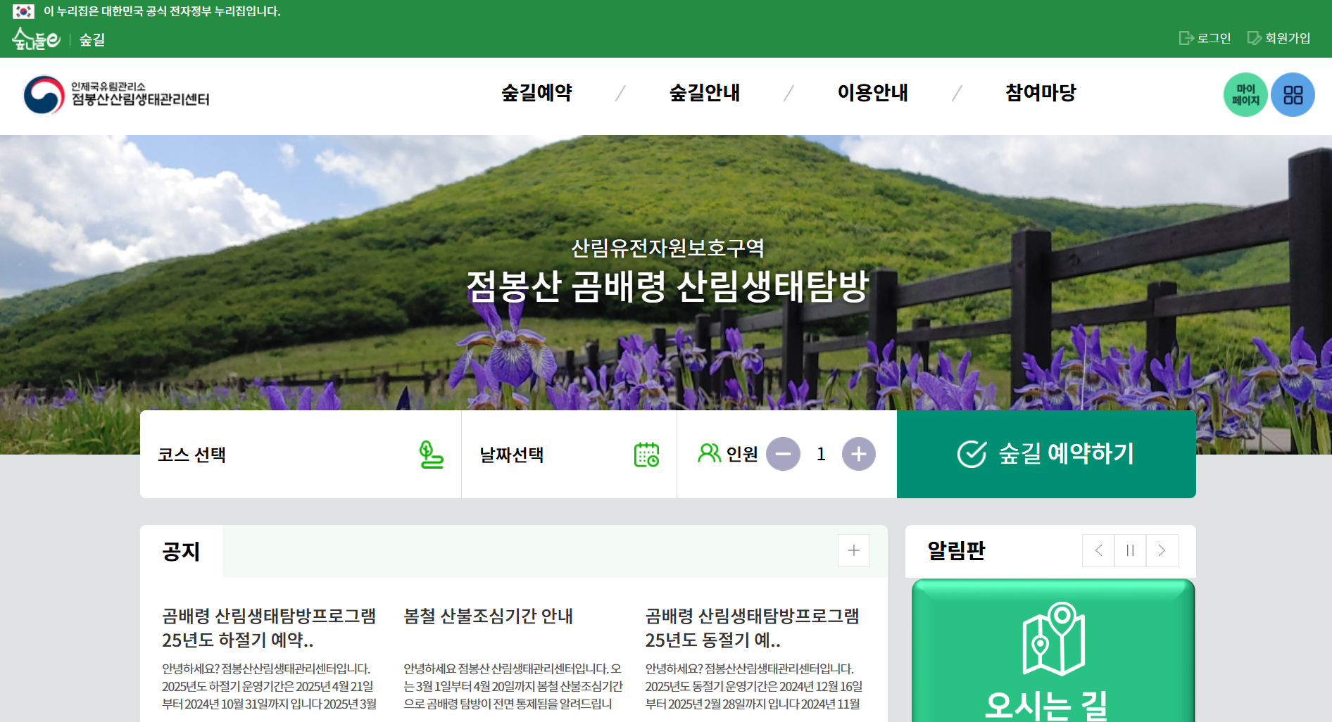 곰배령은 산림유전자원보호구역으로 지정되어 있어 사전 예약을 통해서만 탐방이 가능합니다.