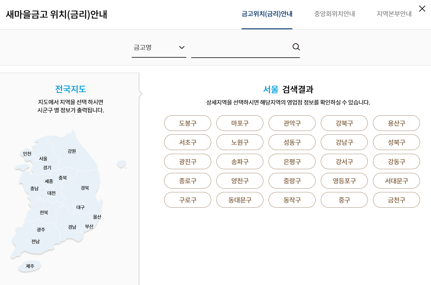 가까운 새마을금고 지점은 여기에서 확인하실 수 있습니다.