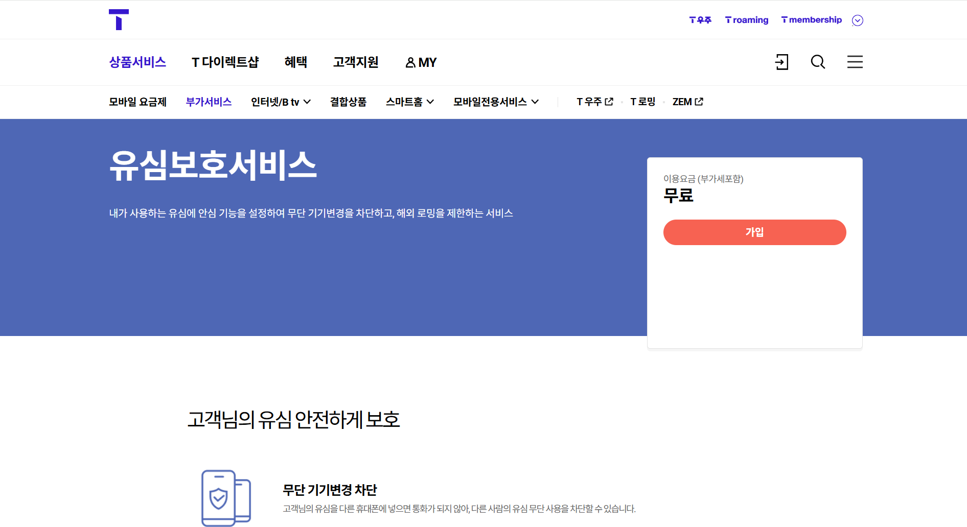 - 경로: 부가서비스 > 안심/보험 > 유심보호서비스